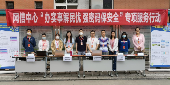 “辦實事解民憂、強密碼保安全”主題實踐活動前期,網信中心黨員志愿者們集中深入地學習了數字素養相關知識,開展了修改密碼服務統一培訓。活動期間,通過宣傳展板、設置業務辦理臺、面對面講解等方式,向師生宣傳了數字素養相關知識及弱密碼的危害,為師生辦理一網通辦、一卡通、學校郵箱密碼修改、校園網賬號激活等業務,服務師生達1500余人次。