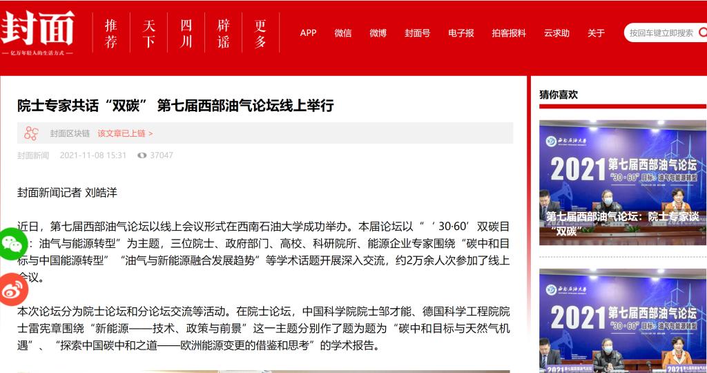 院士專家共話“雙碳” 第七屆西部油氣論壇線上舉行---封面新聞