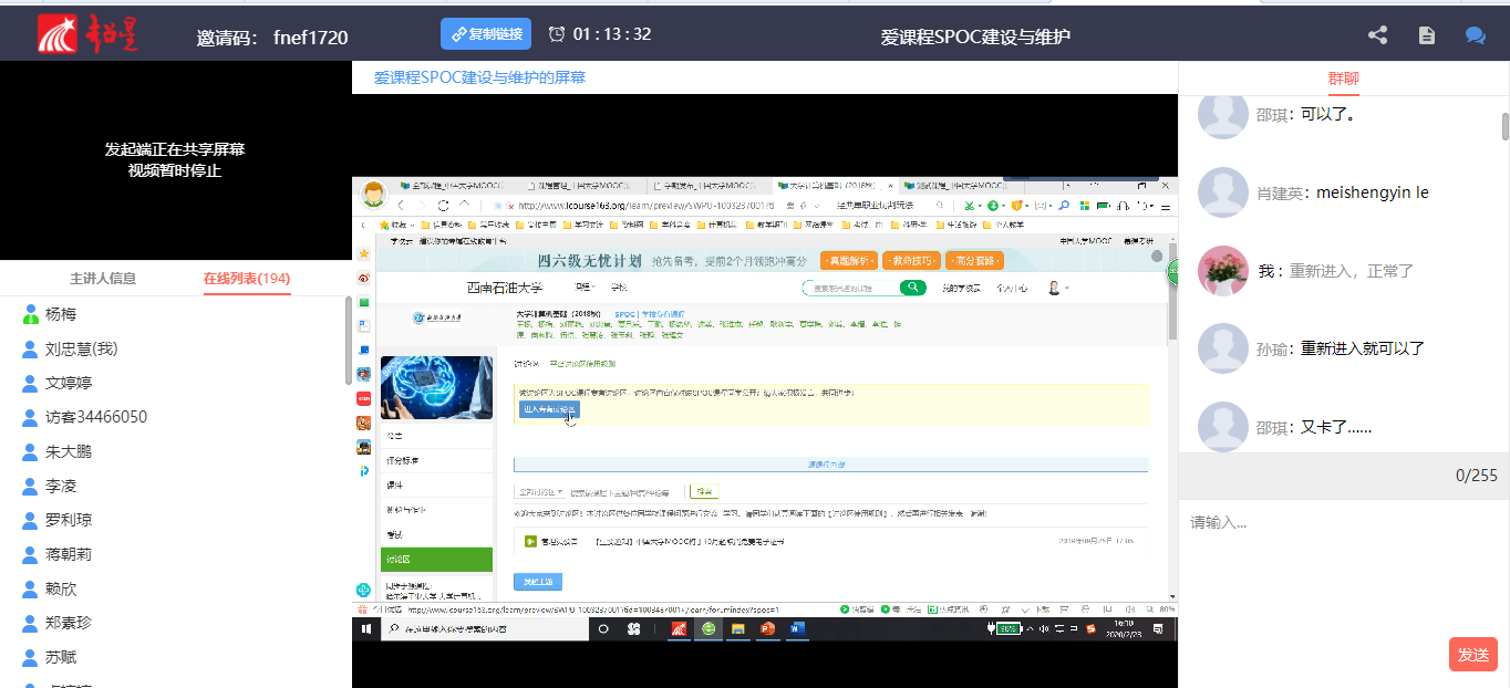 響應學校的在線培訓號召,我院的楊梅老師在課程中心開設了“愛課程SPOC建設與維護”在線培訓課程。包括了MOOC源課程與SPOC課程資源的區(qū)別與利用 SPOC課程維護與資源發(fā)布,設置討論與交流區(qū),測驗、考試、發(fā)布、截止等的注意事項, 數(shù)據(jù)查看、導出與利用等。