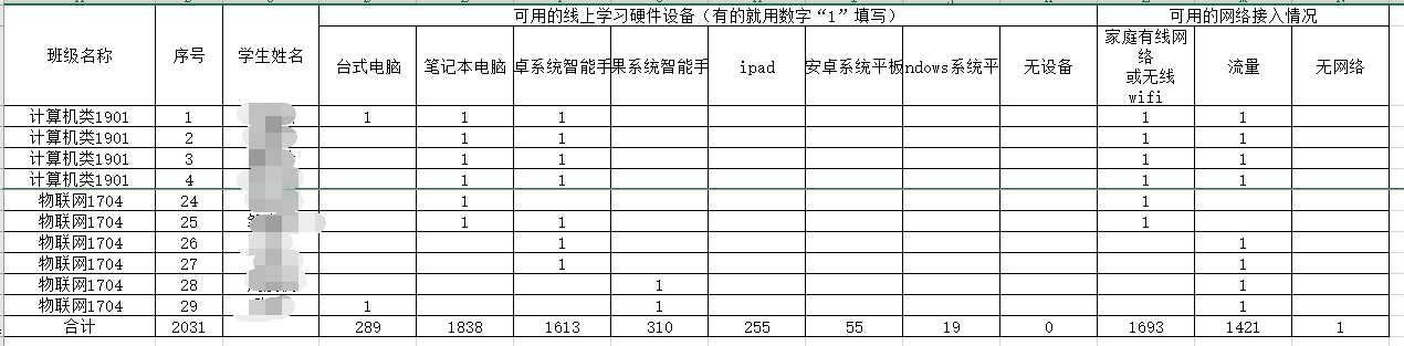 為將“停課不停學(xué)、線下轉(zhuǎn)線上”的抗疫教學(xué)實(shí)施目標(biāo)落到實(shí)處,計(jì)科院本著“一個(gè)都不能少”的宗旨,認(rèn)真細(xì)致地開展了學(xué)生的學(xué)業(yè)銜接和教學(xué)準(zhǔn)備工作。學(xué)院教學(xué)和學(xué)工聯(lián)動配合,對全院六個(gè)專業(yè)四個(gè)年級在讀學(xué)生,以及2018級、2019級轉(zhuǎn)專業(yè)學(xué)生就學(xué)習(xí)的硬件條件、網(wǎng)絡(luò)條件等情況行了全方位的摸底。截止目前,共計(jì)摸底學(xué)生2030人,僅有1人存在“無網(wǎng)絡(luò)”的特殊情況,其余均具有參與在線教學(xué)模式的硬件條件。通過本次工作的開展為下一步具體實(shí)施在線教學(xué)提供了有利支撐。