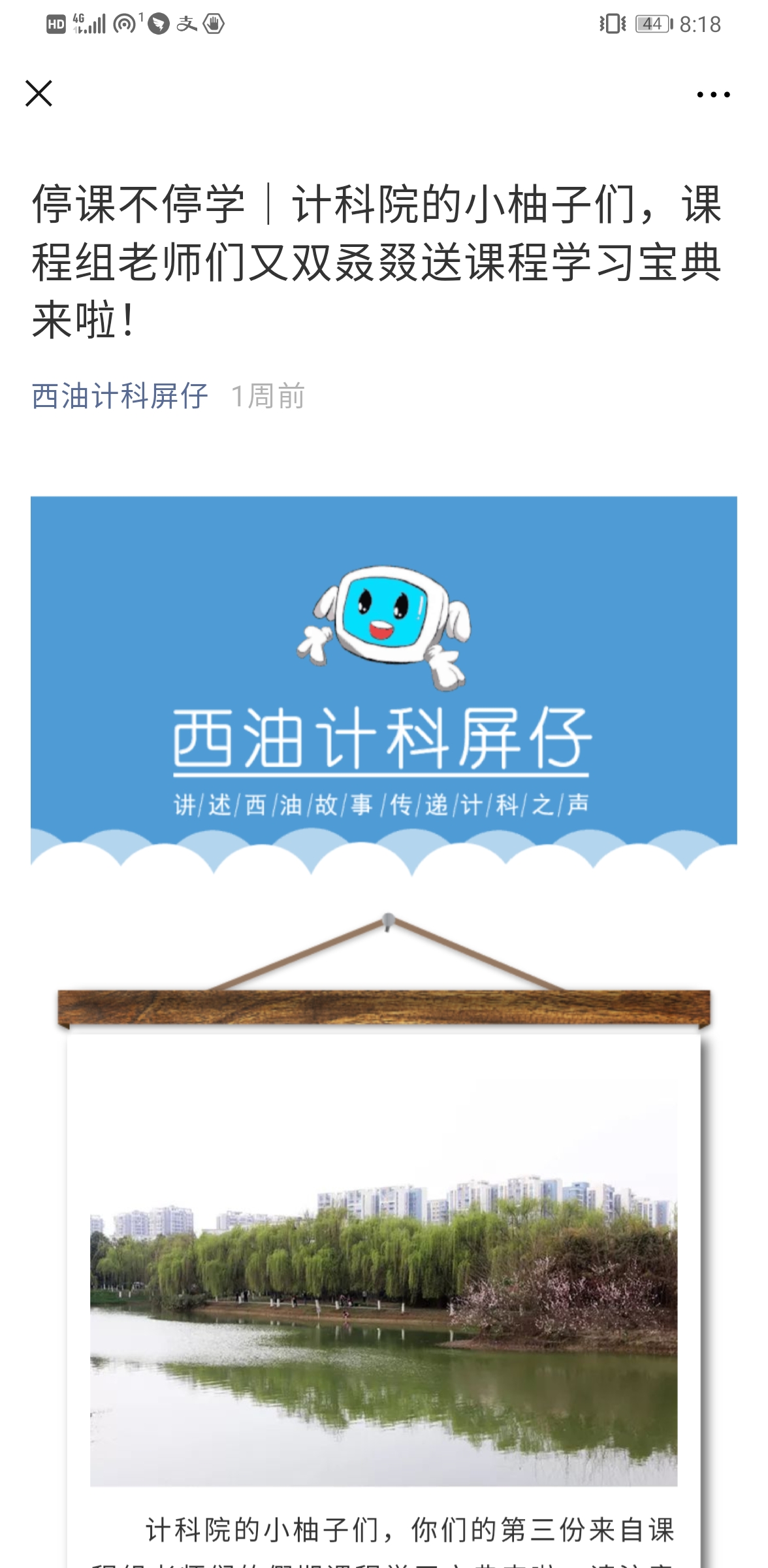 面對疫情當(dāng)前的超長假期,學(xué)院教學(xué)口與學(xué)工口聯(lián)動配合,就各專業(yè)年級在2020年春季學(xué)期專業(yè)學(xué)習(xí)的重點(diǎn)難點(diǎn),打造《停課不停學(xué)|計(jì)科院的小柚子們,課程組老師們又雙叒叕送課程學(xué)習(xí)寶典來啦!》等系列圖文報(bào)道,是計(jì)科學(xué)子宅家也能進(jìn)行專業(yè)學(xué)習(xí)的私人訂制。同時(shí),學(xué)院還發(fā)動學(xué)生科技團(tuán)隊(duì)整理各自擅長領(lǐng)域的專業(yè)學(xué)習(xí)資料,通過屏仔微信公眾號、B站視頻網(wǎng)站等途徑烹制了專業(yè)學(xué)習(xí)的自助餐。