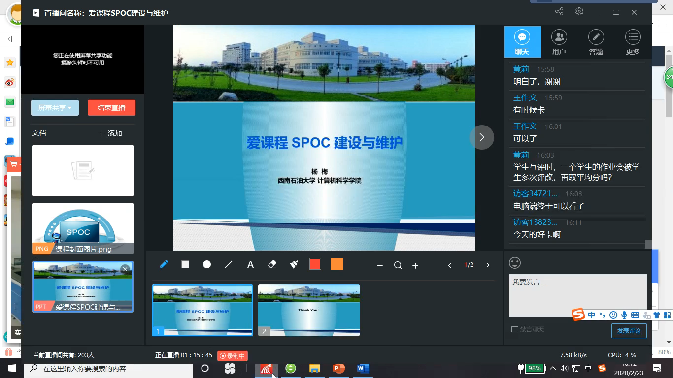 圖8 楊梅老師SPOC課程培訓(xùn)直播課