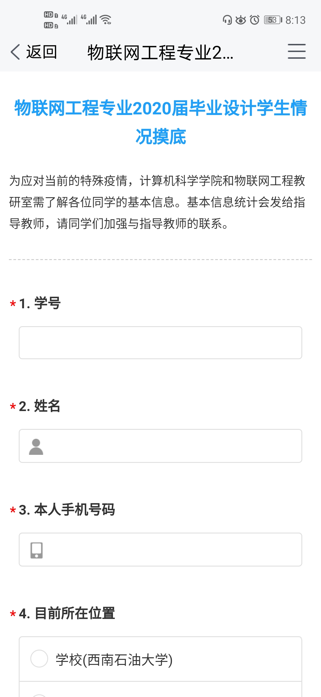 學(xué)院在應(yīng)對疫情防控期間本科畢業(yè)設(shè)計(jì)工作上,于2月6日出臺了“關(guān)于做好疫情防控期間畢業(yè)設(shè)計(jì)指導(dǎo)工作的通知”。通過學(xué)院網(wǎng)站、QQ群、釘釘群傳達(dá)到每一位指導(dǎo)教師。截止2月10日完成了2016級4個(gè)專業(yè)學(xué)生的情況摸底。學(xué)生情況摸底數(shù)據(jù)分發(fā)給了畢業(yè)設(shè)計(jì)指導(dǎo)教師,以助力教師有針對性的開展指導(dǎo)工作,同時(shí)也提供給了學(xué)生工作辦公室,幫助輔導(dǎo)員老師更好的掌握大四學(xué)生基本情況。