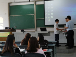 圖1 教師節當天學校領導為學院任課老師鮮花