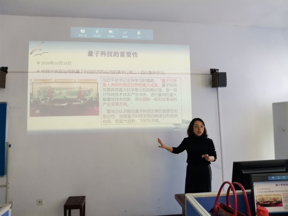 會上,楊梅老師向大家講述了在《計算機與計算思維》課程中實施課程思政的一些途徑:通過讓學生了解計算機的發展、我國在超級計算機、量子計算機上取得成就,讓學生樹立愛國思想和增強自豪感;從我國核心技術受制于人給學生揭示科技自主創新的重要性;通過介紹第3選擇去體會解決矛盾、創新思維;通過量子通信、5G等前沿知識去感受科技的力量;通過虛擬現實技術走進歷史,進行愛國主義教育活動等實現課程思政,達到立德樹人的目的。