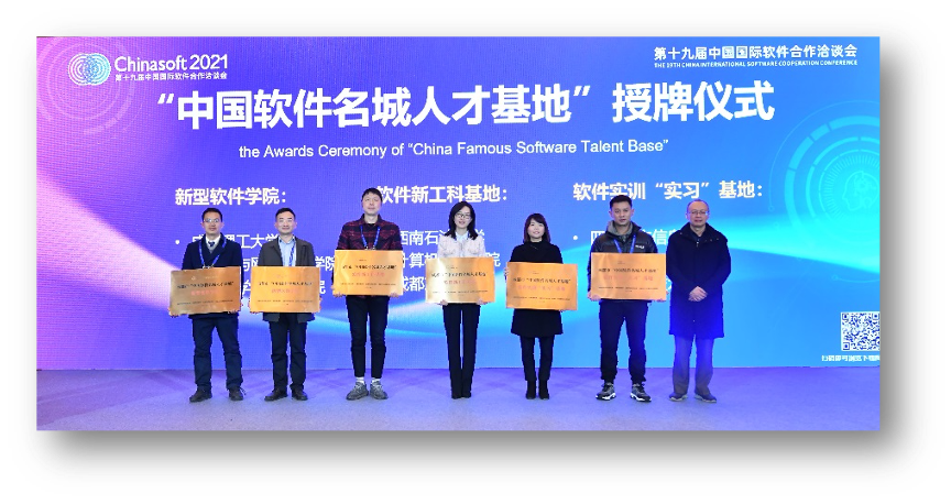 本屆軟洽會設有主題大會,工業軟件、民航軟件、開源軟件、人才隊伍建設等10個專題會議。在本次大會上,西南石油大學計算機科學學院王楊作為中國軟件名城人才基地(軟件新工科基地)建設點負責人參加了授牌儀式。