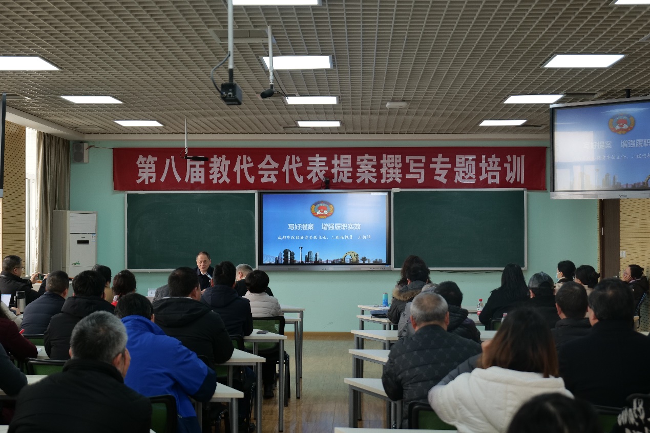 此次培訓特邀成都市政協提案委副主任王挺峰圍繞“寫好提案,增強履職實效”開展專題講座。王挺峰從全國政協70多年來100件有影響力的、至今仍產生深遠影響的重要提案和成都市4件有代表性的提案切入,詳細講解了“提案的地位和作用” “如何撰寫提案”“如何辦好提案”,總結出了寫好提案的“21字箴言”——提案建議更務實、走訪調研更踏實、反映民情更真實。王挺峰在授課中強調,提案是教代會和教代會代表履職的重要方式,當好代表,從寫好提案開始;提案的撰寫要把握“選題”“調研”“撰寫”三個步驟,選題要大小適中、體現深度,調研要交叉比對、網上網下,還特別強調無調研不提案;撰寫時題目要新穎、標題要精煉,情況要客觀精要、概括評價,問題要客觀中正,精煉準確,建議要前瞻突破、務實可行。