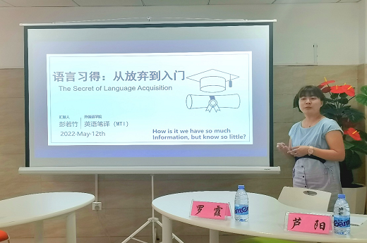 彭若竹以“語(yǔ)言習(xí)得:從放棄到入門(mén)”為主題分享了她的英語(yǔ)學(xué)習(xí)經(jīng)歷。從語(yǔ)言和語(yǔ)言學(xué)、語(yǔ)法的失敗、外語(yǔ)輸入假說(shuō)三個(gè)部分進(jìn)行展示,針對(duì)同學(xué)們普遍存在的語(yǔ)言習(xí)得困難問(wèn)題給出了解決辦法。她強(qiáng)調(diào),沒(méi)有一個(gè)人能夠通過(guò)技能培養(yǎng)獲得語(yǔ)言能力,學(xué)習(xí)語(yǔ)法并不能掌握一門(mén)語(yǔ)言。語(yǔ)法很重要,但并不是全部,外語(yǔ)輸入才是關(guān)鍵。只有當(dāng)習(xí)得者接觸到“可理解的語(yǔ)言輸入”,又能把注意力集中于對(duì)意義或?qū)π畔⒌睦斫舛皇菍?duì)形式的理解時(shí),才能產(chǎn)生習(xí)得。