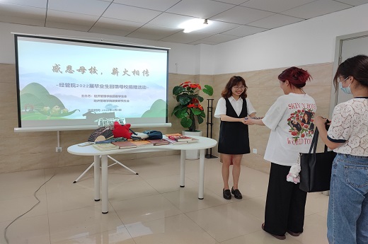 為進一步弘揚和傳承中華民族傳統美德,加強“導”“輔”育人成效,提高研究生的感恩意識,促進愛心的傳遞,經濟管理學院于6月9日14點30分在學生公寓22棟“臨溪書院”開展“感恩母校,薪火相傳”經管院2022屆畢業生回饋母校捐贈活動。經濟管理學院研究生輔導員徐余躍與2022屆畢業生代表參加本次活動。