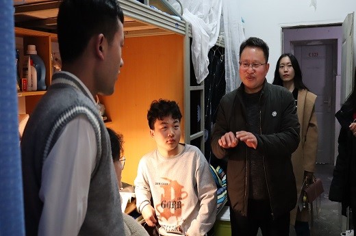 2月19日,學院黨委書記黨劉栓、黨委副書記紀委書記曾有為、副院長郭志鋼與各年級輔導員一起到學生宿舍看望我院學生。