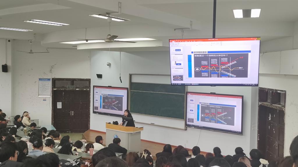 會議最后,李昕露以大學成長曲線圖作為結尾來鼓勵同學們在新學期繼續努力奮斗,“昕昕向榮”,未來可期!