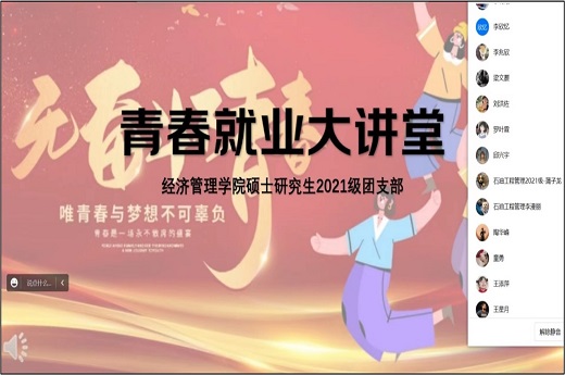 青春就業大講堂可以幫助同學們拓展視野,了解更加廣闊的職業選擇范圍和機會。為學習貫徹中央、省委經濟工作會議精神,進一步做好高校畢業生就業工作,落實《共青團四川省委、四川省教育廳、四川省人力資源和社會保障廳關于在四川省各高校開展“青春就業大講堂”的通知》要求,我院于今年5月啟動“青春就業大講堂”活動。經濟管理學院碩士研究生2021級團支部于2023年5月11日成功開展此次活動。同學們更是積極參與,注冊了智慧團建的130名成員全員參加。