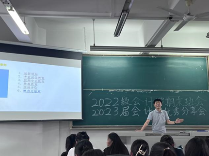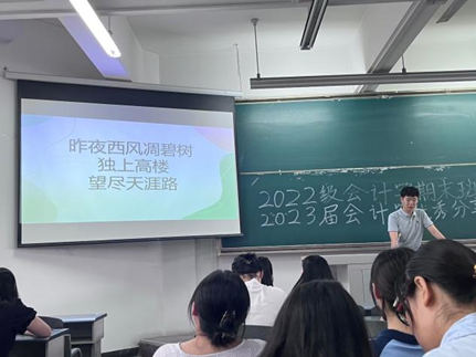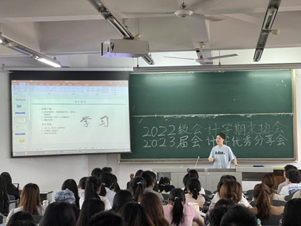 6月12日經濟管理學院會計學專業2022級于教室博學樓B502召開了以“見微知著,砥礪前行”為主題的2022級會計學期末班會及2023屆會計學優秀生經驗分享會。