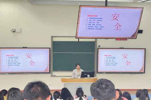 冉老師帶領(lǐng)同學(xué)們回顧了大一學(xué)年的經(jīng)歷,總結(jié)了這一段時(shí)間的成就和不足,提醒每位同學(xué)注意自己的學(xué)分修讀、二課修讀、體質(zhì)健康測(cè)試等情況。并對(duì)同學(xué)們即將到來(lái)的大二學(xué)習(xí)生活提出了期許,希望同學(xué)們繼續(xù)保持積極向上的進(jìn)取精神,科學(xué)規(guī)劃自己的發(fā)展路線,明確自己的短期、中期和長(zhǎng)期目標(biāo),努力提升個(gè)人能力,為學(xué)院發(fā)展添磚加瓦。期間冉老師還強(qiáng)調(diào)了考風(fēng)考紀(jì)的重要性,提醒同學(xué)們對(duì)待接下來(lái)的考試務(wù)必踏實(shí)復(fù)習(xí)、誠(chéng)信應(yīng)考。最后,冉老師強(qiáng)調(diào)了暑假放假期間的安全注意事項(xiàng),重點(diǎn)圍繞請(qǐng)銷假流程的規(guī)范性、交通安全、出游安全、飲食安全、財(cái)產(chǎn)人身安全等安全問(wèn)題進(jìn)行強(qiáng)化教育。特別是對(duì)6.22國(guó)際禁毒日進(jìn)行短片宣傳教育,提高了同學(xué)們的警惕心,同時(shí)還給大家布置了暑期選擇性任務(wù),目的在于讓同學(xué)們對(duì)自己有清晰的自我認(rèn)知。