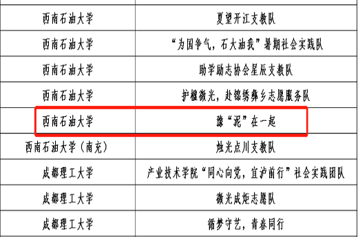 圖4 豫“泥”在一起團隊代表西南石油大學成功入選團中央“圓夢工程”志愿服務授權截圖