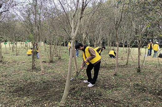 活動正式開始之前,負責人賴康鈴進行人數清點,并介紹了維護學子林的具體事宜以及注意事項。隨后,逐個分發志愿服。志愿者拿起鋤頭,戴上手套,開始對學子林進行了徹底的維護。過程中,志愿者們井然有序,有條不紊地進行鋤地、拾枯葉、拔雜草等清理活動。最后,用垃圾袋將所有雜草及枯葉收集裝好。他們的辛勤勞動讓學子林恢復了整潔,煥然一新。對于此次的活動,電子商務2022級崔彩彩表示:“維護學子林讓我們親身體驗到了勞動的幸福感。通過這樣的勞動,提升了我們的服務意識,相信在未來,我們也會繼續參與到類似的活動中,用自己的行動反饋社會?!?/span>