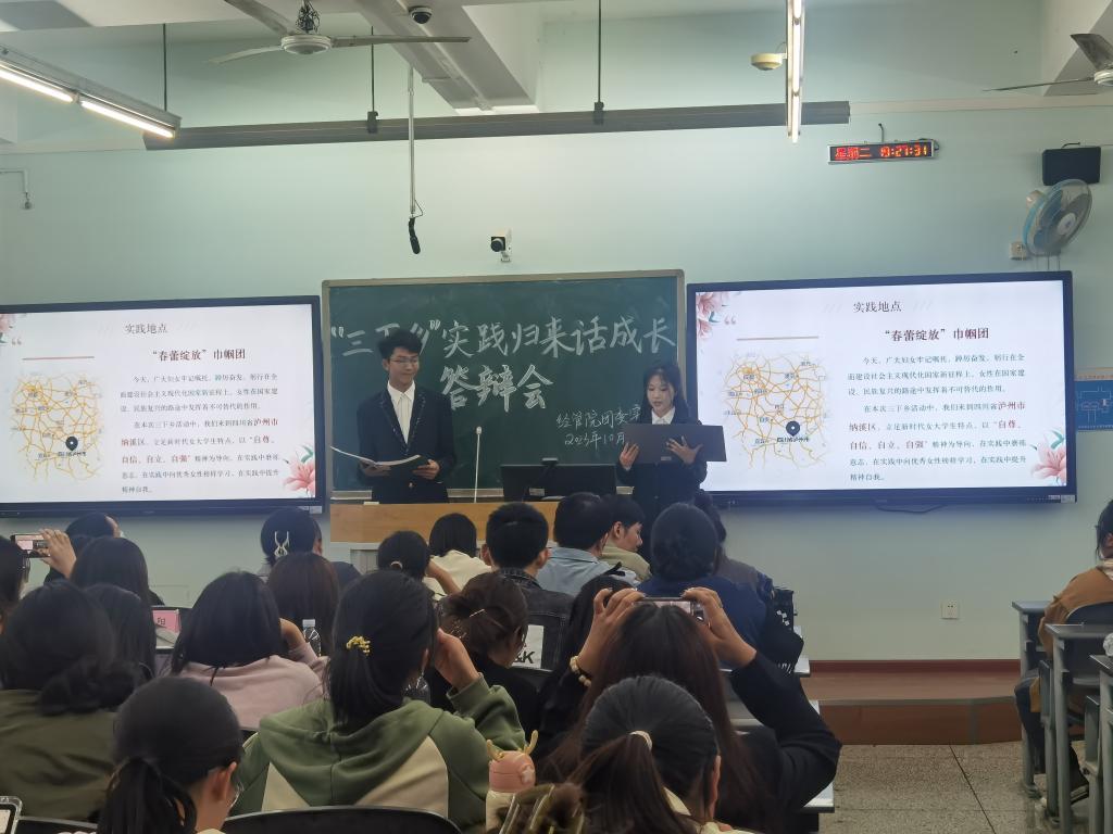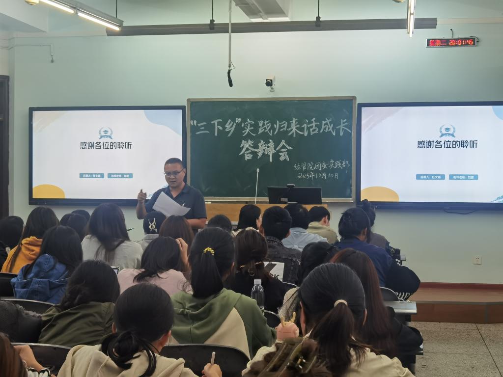 2023年10月10日,我院團委實踐部承辦的暑期三下鄉成果展示答辯會在思學樓A505正式召開。團委書記劉波及各級輔導員擔任評委,眾多學生積極參與。
