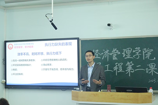 第二課上,學院黨委副書記、紀委書記曾有為作為主講老師,以“目標設定與執行力提升”為主題,用幽默平和的語氣向學員們講解了如何管理好一個團隊,處理好團隊里的責任關系,并提高個人的執行力,出色地完成自己的工作;教導學員要善于運用SMART原則要建立可量化的目標,并對目標進行細化、度量以更好地完成任務。此外,曾有為老師用猴子管理法生動地向學員們講述了作為領導者或管理者如何做好團隊內的任務分配,讓下屬保質保量地完成任務的同時也能得到鍛煉提升自己的各項能力。在課程最后,曾有為老師用五條標準告訴學員如何完美地做好自己的工作,并展示出自己的價值。