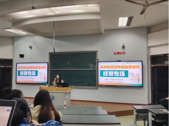 首先,葉果老師通過數(shù)據(jù)展示,幫助同學們分析近年來的就業(yè)形勢,考研形勢以及考研的意義。其次,葉果老師分享考研報考經(jīng)驗并進行經(jīng)管專業(yè)考研整體形勢解讀,告訴同學們考研選擇專業(yè)院校的步驟技巧以及如何確定報考的專業(yè)方向,給同學們提供報考建議。