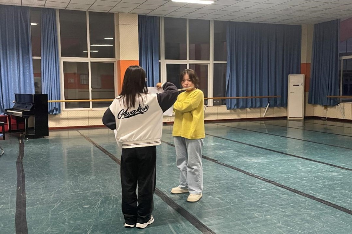圖1:宿芳菲表演長笛曲目《陽光燦爛照天山》