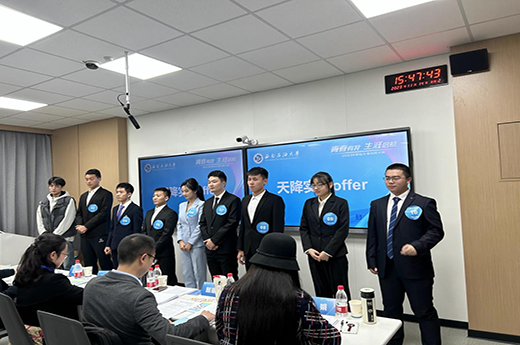 本次決賽內(nèi)容包括“主題陳述”、“評委提問”及“天降offer”三個環(huán)節(jié),共計19位選手參賽。在主持人張涵介紹了比賽注意事項和評分規(guī)則之后,參賽選手們依次入場進(jìn)行答辯。選手們在第一個陳述環(huán)節(jié),圍繞自己的職業(yè)規(guī)劃及職業(yè)目標(biāo),介紹自己實(shí)現(xiàn)職業(yè)目標(biāo)的具體行動與相關(guān)成果。同時,結(jié)合社會需求與專業(yè)特色,剖析個人能力,闡釋職業(yè)實(shí)現(xiàn)路徑,展示自我職業(yè)發(fā)展預(yù)期和對未來職場的向往,并且就當(dāng)前的就業(yè)形勢、環(huán)境分析介紹自己的職業(yè)優(yōu)勢。在選手們完成職業(yè)規(guī)劃陳述后,評委老師進(jìn)行現(xiàn)場提問,并提出相應(yīng)的建議,讓同學(xué)們加深了會職業(yè)生涯規(guī)劃的理解,幫助同學(xué)們不斷優(yōu)化改進(jìn)。在結(jié)束問答環(huán)節(jié)后,評委老師給予心儀選手天降實(shí)習(xí)offer。同時,各位評委老師們也鼓勵學(xué)生在未來要不斷進(jìn)步,付諸相應(yīng)的努力與行動,向自己的職業(yè)目標(biāo)前進(jìn)。