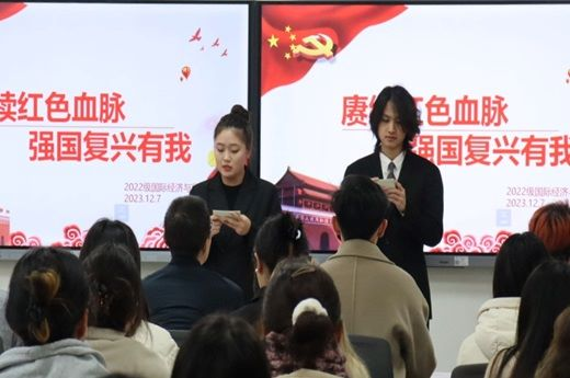 為響應(yīng)祖國強(qiáng)國復(fù)興號(hào)召,提高同學(xué)們的愛國主義情懷和時(shí)代使命感,12月7日,我院國際經(jīng)濟(jì)與貿(mào)易專業(yè)團(tuán)支部在博學(xué)樓B202開展了“賡續(xù)紅色血脈,強(qiáng)國復(fù)興有我”主題活動(dòng)。共青團(tuán)四川省委副書記、西南石油大學(xué)黨委宣傳部、網(wǎng)絡(luò)思政與輿論信息科科長李凱老師作為嘉賓出席了本次活動(dòng)。