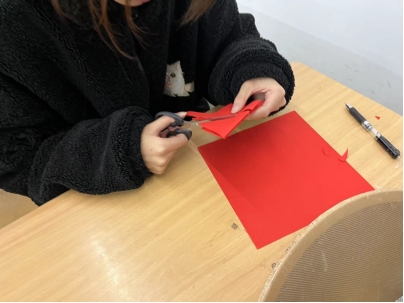 張梓菀先給同學們講解了剪紙的文化背景及發展史,讓大家對剪紙有了初步認識,隨后陳柏霏和夏欣越為大家介紹折疊、刺孔等剪紙技巧,講解剪紙的基本步驟與注意事項,將剪紙所需的材料分發到同學們手中,并指導同學們進行剪裁。項目團隊成員還走進了新都區大豐街道方營社區開展活動,吸引了眾多社區居民的參與和關注。