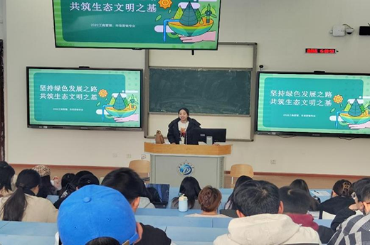 為增強同學們的環(huán)保意識,積極倡導綠色生活,引導同學們積極踐行綠色生活方式,3月8日,2022級工商管理、市場營銷專業(yè)召開了“堅持綠色發(fā)展之路,共筑生態(tài)文明之基”主題班會,班會由輔導員冉玉嘉主持,兩個專業(yè)同學全體參與。