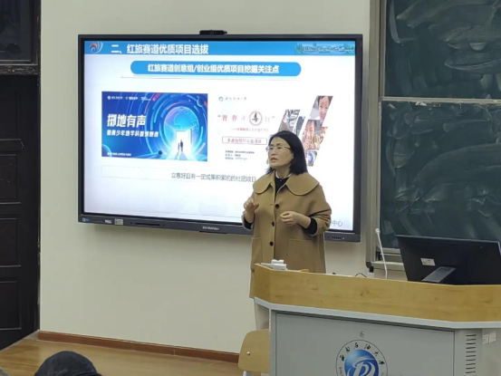 李媛媛老師從往屆賽事解讀、如何挖掘項目、PPT制作技巧等幾個方面向參加講座的師生作了介紹,并通過對往期國賽獲獎項目案例分析,梳理了不同賽道組別項目PPT的呈現(xiàn)邏輯、設(shè)計技巧,為大家提供有益建議。同時,也鼓舞大家積極參加備賽,樹立信心。