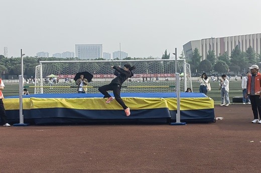 管理科學與工程2022級歐曉琴站在助跑線上,眼神專注而堅定,深吸一口氣,猛地一躍,身體在空中劃出一道優美的弧線,輕盈地越過橫桿,最終取得跳高項目亞軍。