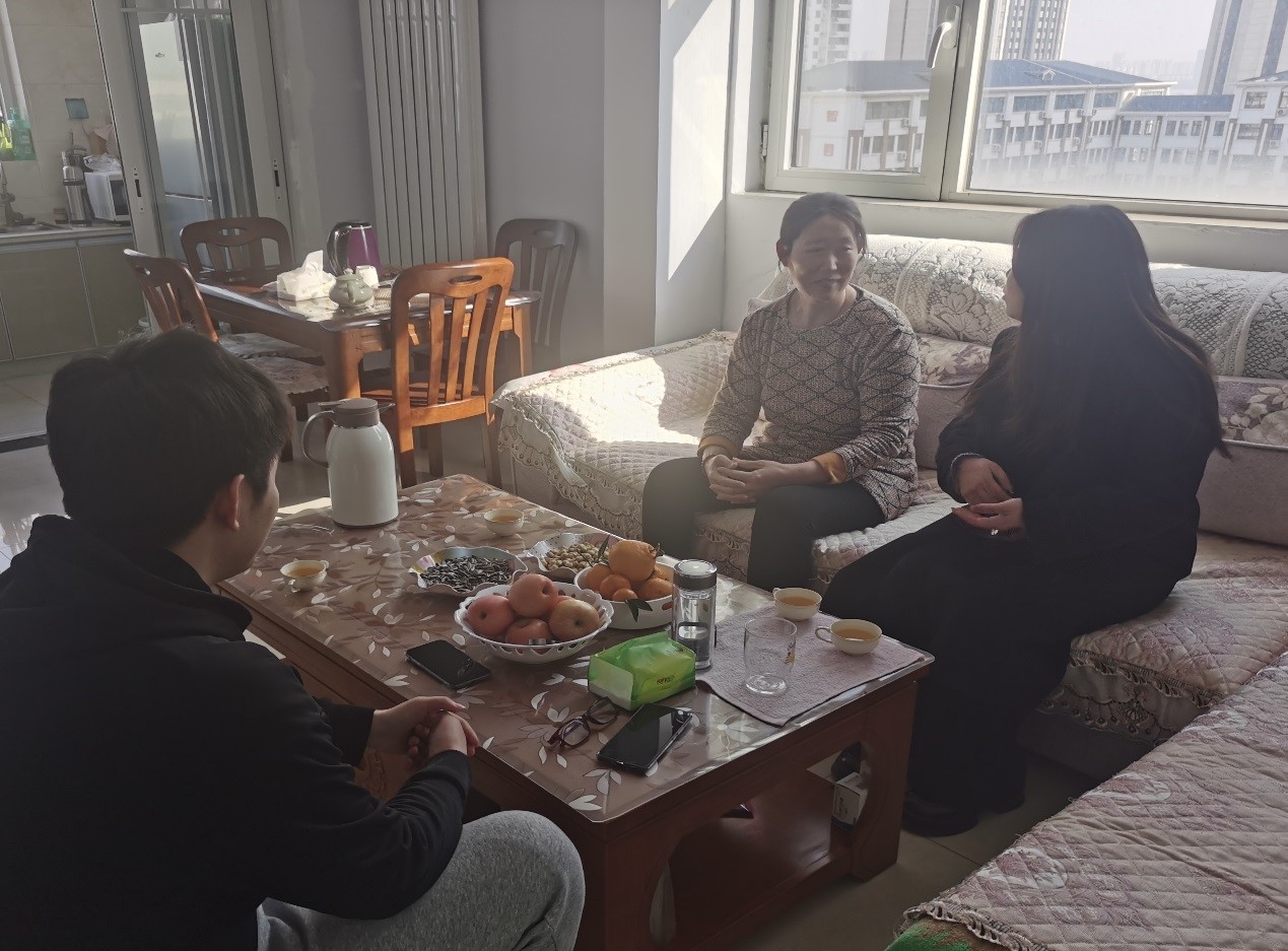 在成都青白江,22級輔導員申成琳老師來到小曼同學的家中,與家長交流了解學生假期期間的生活,并告知家長學生在校期間的情況。學生父親表達了對于學校資助相關的需求,希望能有更多學費減免政策。