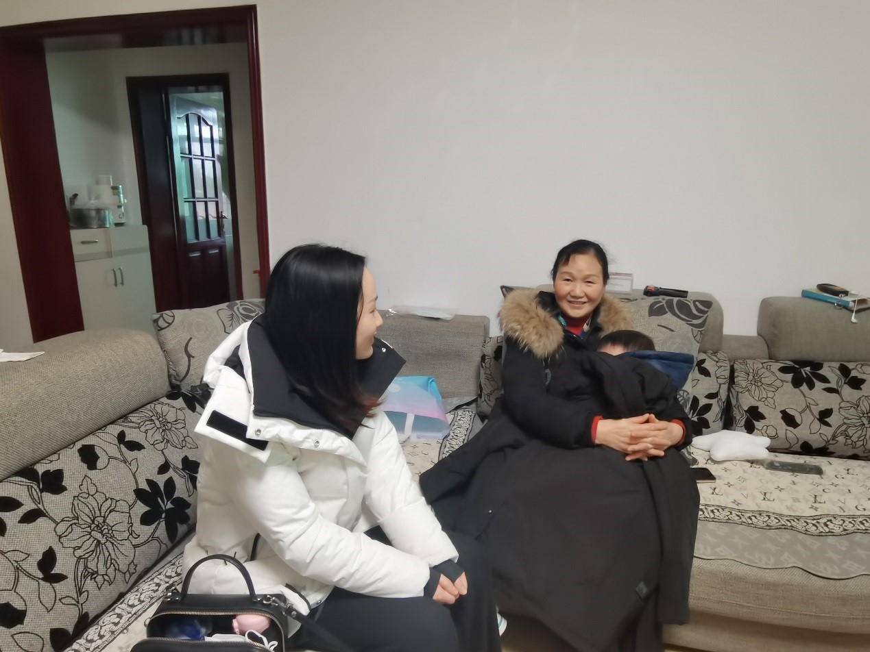 在四川成都,20級輔導員袁桔來到困難生劉同學家,向其媽媽傳達了劉同學獲得國家勵志獎學金的喜報,交流了劉同學在求職過程中的困擾,向他們講述了相關的就業政策,并表示自己會鼓勵小劉積極求職,持續開展就業指導和心理疏導工作,做好同學們的職場引路人。