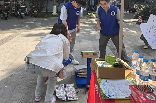 活動開始前,青志協校外公益服務部組織人員購買了各種實用的小禮品作為積分兌換的獎品,旨在提高居民們參與活動的支持性和對活動內容的滿意度,為活動的順利開展提供了不可缺少的物質條件。活動過程中,校外公益服務部的同學熱情的向居民介紹活動,志愿者主動積極幫助居民搬運廢品,稱重和積分登記。志愿者的辛勤付出讓本次活動得以井然有序的開展并獲得了居民們的支持與好評。