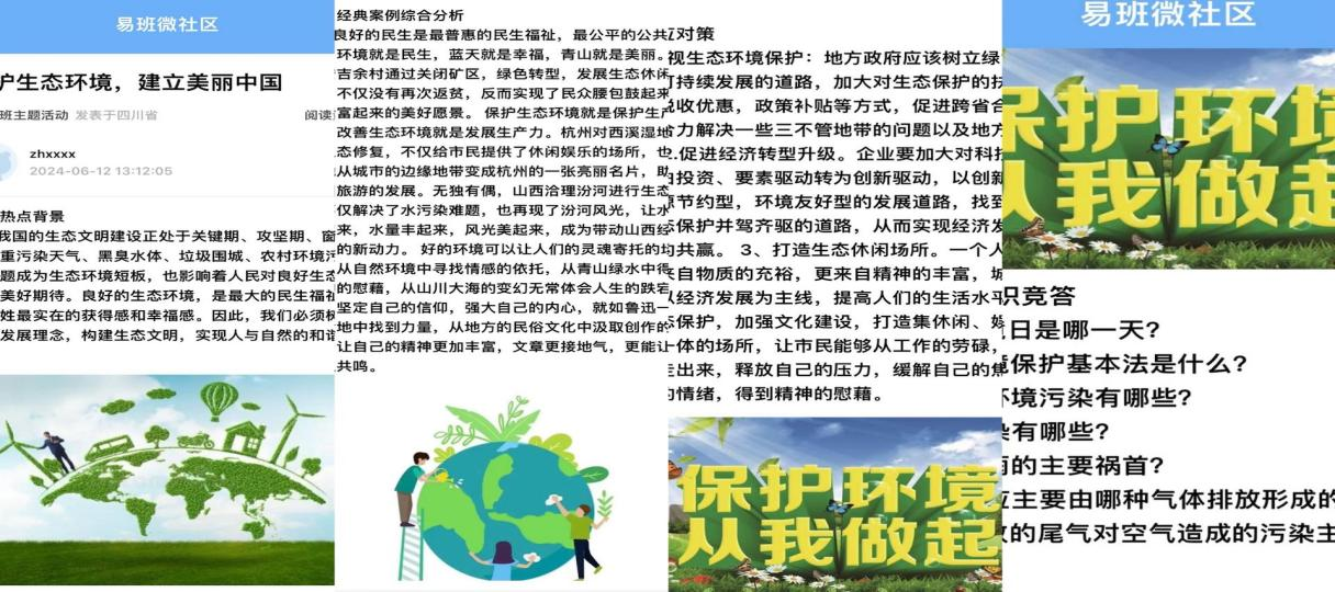 活動(dòng)開始,張宇婷在易班微社區(qū)向同學(xué)們展示了生態(tài)文明的熱點(diǎn)背景和全球面臨的生態(tài)環(huán)境問(wèn)題,如氣候變化、資源短缺、環(huán)境污染等,令同學(xué)們深刻認(rèn)識(shí)到保護(hù)生態(tài)環(huán)境的重要性和緊迫性。我國(guó)的生態(tài)文明建設(shè)正處于關(guān)鍵期,環(huán)境污染會(huì)影響人民對(duì)美好生活的期待,所以我們必須堅(jiān)持人與自然和諧共生。同時(shí),張宇婷通過(guò)分析生態(tài)問(wèn)題成功治理的經(jīng)典案例,闡明了生態(tài)問(wèn)題對(duì)民生福祉的重要意義。之后,張宇婷介紹了相關(guān)對(duì)策和環(huán)保的基本知識(shí),如垃圾分類、節(jié)能減排等,引導(dǎo)和激勵(lì)同學(xué)們從身邊小事做起,積極投入到生態(tài)環(huán)境建設(shè)當(dāng)中,為環(huán)保事業(yè)貢獻(xiàn)青年力量。最后,張宇婷組織同學(xué)們進(jìn)行了環(huán)保知識(shí)競(jìng)答,豐富同學(xué)們的理論知識(shí),加深同學(xué)們對(duì)生態(tài)文明建設(shè)意義的理解。
