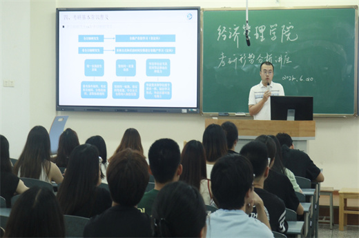 隨后,經濟管理學院副院長蘇昊結合自身考研經歷,為考生們帶來了鼓舞人心的分享。他強調,考研成功不僅僅依賴于智商,更需要堅定的毅力、健康的體魄以及正確的方向。他鼓勵考生們明確目標,持之以恒地努力,為自己的夢想而奮斗。同時,蘇昊還介紹了經濟管理學院研究生專業的豐富學位點和強大的師資力量,為考生們提供了更多的選擇和機會。