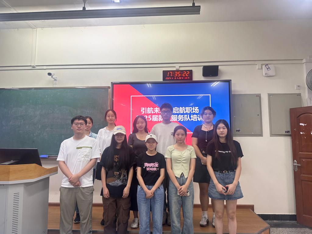 為提高2025屆就業(yè)服務(wù)隊(duì)成員對就業(yè)信息的把握程度和服務(wù)水平,6月21日下午,我院“職為等妳”生涯微社區(qū)在博學(xué)樓b302開展“引航未來,啟航職場”主題就業(yè)服務(wù)培訓(xùn)。該會議由輔導(dǎo)員李昕露老師主持,2025屆就業(yè)服務(wù)隊(duì)全體成員參與。