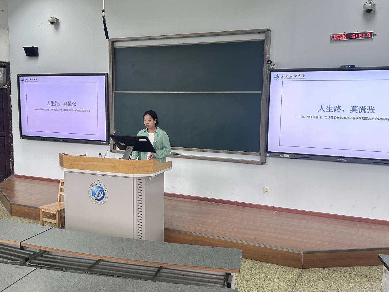 6月27日下午,市場(chǎng)營(yíng)銷、工商管理專業(yè)2022級(jí)在思學(xué)樓C210教室舉行期末年級(jí)班會(huì),本次班會(huì)以由輔導(dǎo)員冉玉嘉主持,兩個(gè)專業(yè)全體同學(xué)參與。