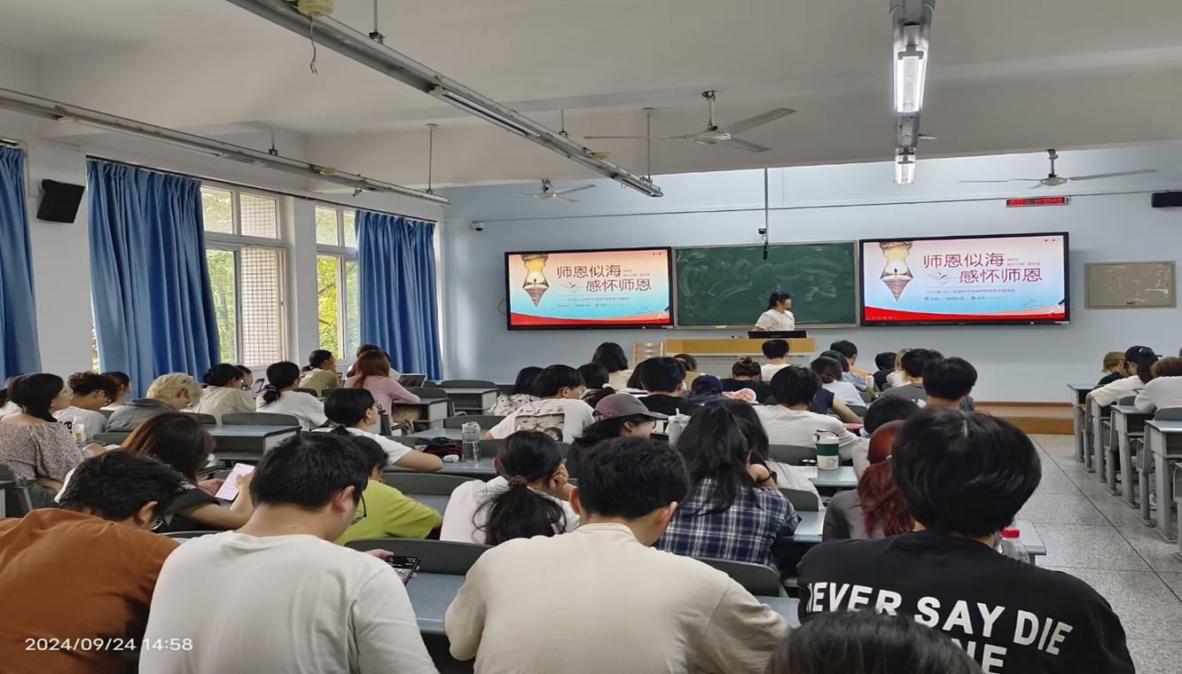 為深入貫徹落實黨的二十屆三中全會精神,弘揚尊師重教的優(yōu)良傳統(tǒng),營造尊師重道的良好社會風氣,培養(yǎng)學生的感恩之心,向敬愛的教師表達感激與崇敬之情,加強師生之間的溝通與交流,增強教師的光榮感、責任感和使命感。在第40個教師節(jié)來臨的金秋時節(jié),2023級國際經(jīng)濟與貿(mào)易2班同學于2024年9月24日下午在博學樓A206教室舉辦了“師恩似海,感懷恩師”主題班會。