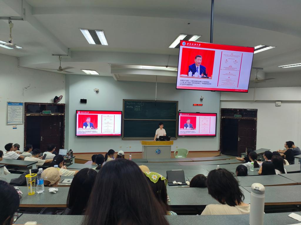 王子昀介紹了“三中全會”的內涵并回顧了黨的十一屆三中全會改革開放以來,歷屆三中全會聚焦的改革議題。隨后,王子昀配合《中共中央關于進一步全面深化改革、推進中國式現代化的決定》為同學們講解了黨的二十屆三中全會召開的基本情況,以及會議召開與大學生的關系,強調當代青年要積極投身現代化建設,努力提升專業能力和道德修養,積累實踐經驗。