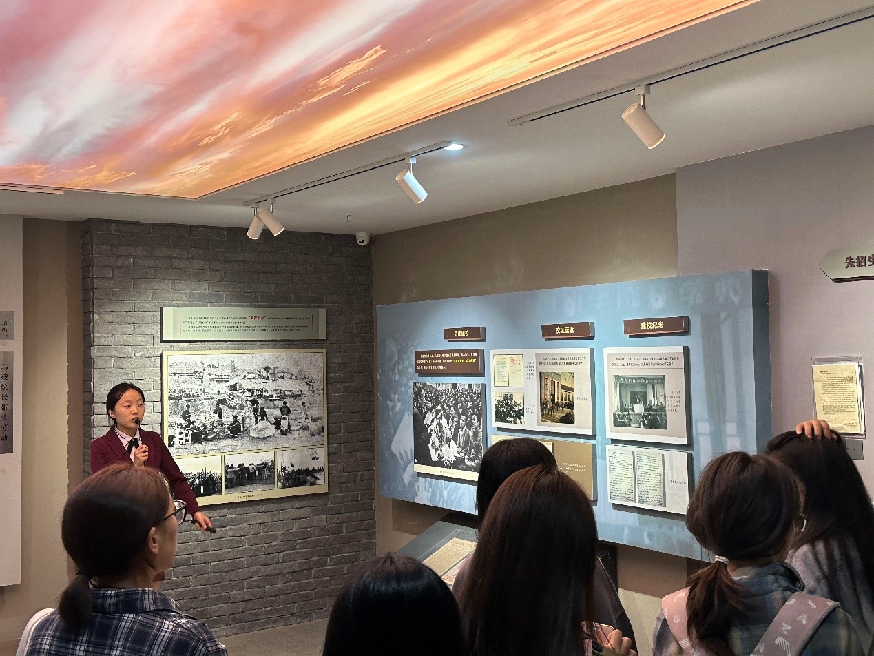在校史館內,同學們懷著崇敬的心情,緊緊跟隨著講解員的步伐,沉浸于講解員所講述的一段段鮮活的歷史故事當中。