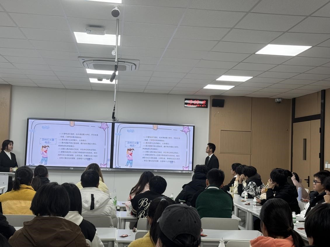 此次班會由龔愛雅、屈斌斌同學主持,運用豐富多樣的形式向同學們普及防火知識。班會借助多媒體教學設備,播放一系列觸目驚心的火災事故視頻資料,真實還原火災場景,熊熊烈火、滾滾濃煙的畫面,讓同學們深刻直觀地感受到火災的無情與危害,為后續知識講解筑牢情感認知基礎。