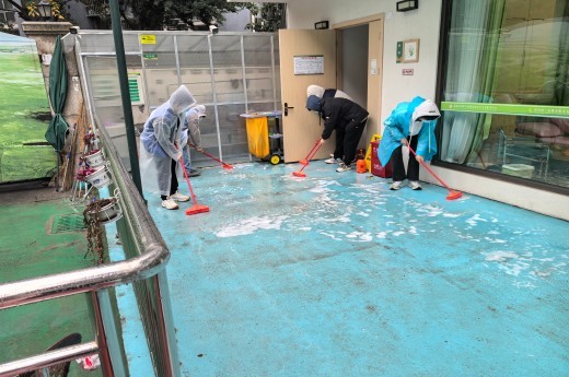 志愿者們分工明確,有的負責清掃地面,將堆積的灰塵和雜物清掃干凈;有的仔細擦拭桌椅,讓其煥然一新;還有的清潔窗戶和室外欄桿,使室內外更加明亮與潔凈。大家齊心協力,不怕臟、不怕累,經過近2.5小時的努力,養老服務綜合體的衛生得到了很大的改善。