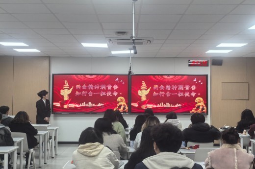 3月20日,工商管理2024級在博學樓B203開展了一場以“兩會精神潤青春,知行合一擔使命”為主體的班會。
