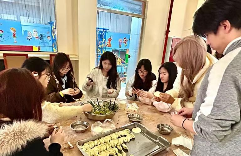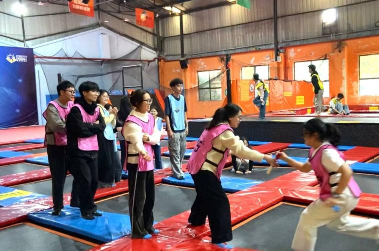團建活動以四大趣味項目點燃團隊活力。在專業蹦床區,各小組以彈跳接力的形式挑戰爆發力與協作默契。拔河對抗賽場上口號震天,力量與策略較量引爆熱烈氛圍。躲避球競技則憑借靈活攻防與戰術配合考驗團隊信任。隨機組隊的剪刀石頭布友誼賽以輕松互動打破隔閡,笑聲不斷。午間,師生齊包餃子,王娟、冉玉嘉現場示范指導,搟皮調餡間交流各地特色包法,熱氣騰騰的餃子宴以“家”味凝聚情誼,詮釋“青馬一家親”的溫暖內核。