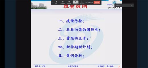 為動員學(xué)生全力做好疫情防控工作,落實(shí)新學(xué)期線上教育教學(xué)相關(guān)準(zhǔn)備工作,3月2日晚,我院2019級國際經(jīng)濟(jì)與貿(mào)易專業(yè)輔導(dǎo)員尹申老師在線上平臺主持召開新學(xué)期第一次主題班會,該專業(yè)全體同學(xué)參加會議。