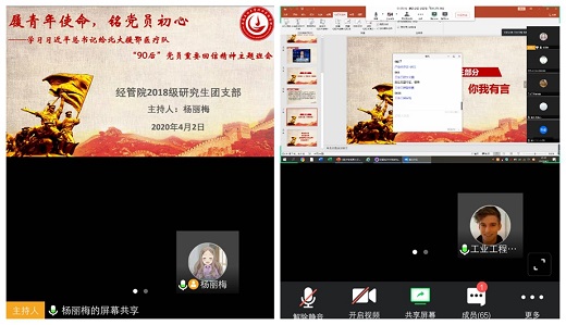 履青年使命,銘黨員初心——經(jīng)濟(jì)管理學(xué)院2018級(jí)研究生團(tuán)支部關(guān)于“習(xí)近平總書記給北京大學(xué)援鄂醫(yī)療隊(duì)全體‘90后’黨員的重要回信精神”的線上學(xué)習(xí)主題班會(huì)成功召開(kāi)