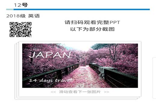 在旅游路線規劃大賽的投稿階段收到了許多優秀的作品,作品的內容形式多樣,內容包含杭州、三亞、新疆以及日本等國內外各大旅游熱點地區。上交的旅游路線規劃作品形式豐富,包含文檔,PPT、視頻、H5等,其中還有全英文的作品。收集到的優秀作品被放到了官方微信公眾號:西南石油大學旅游信息協會上,給大家共享同時投票。同學們可以通過旅協的微信公眾號來鑒賞這些優秀的旅游路線規劃方案。