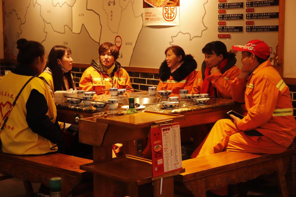 愛心商家店內,整飭一新,志愿者們、店家工作人員與環衛工人圍桌而坐,共同包著象征團圓的餃子。大家通過圓圓的餃子將團圓和幸福相互傳遞,共度冬至佳節,紅紅火火、其樂融融的景象,成為了這個冬日最溫馨的畫面,這是校青志協冬日里開展的“志愿石大·‘瓶’水相逢”活動中的一幕;除了溫馨還要安全,校青志協從冬季防火安全著手,開展了冬季消防知識講座,邀請消防機構,進行專項培訓,向成百上千的學生宿舍送去了冬季防火的安全秘籍;有溫馨、有安全,更要和諧,地科院、化工院、電信院紛紛舉行了“志愿石大·旗幟”活動,讓志愿服務的大旗持續在校內飄揚;與此同時,外國語學院開展了“志愿石大·大手拉小手”柏水小學支教活動,校青志協舉辦了“志愿石大·情滿夕陽”新都區老干部活動館志愿服務活動,給老人們送去了最真誠的祝福……