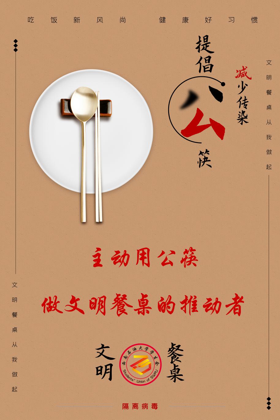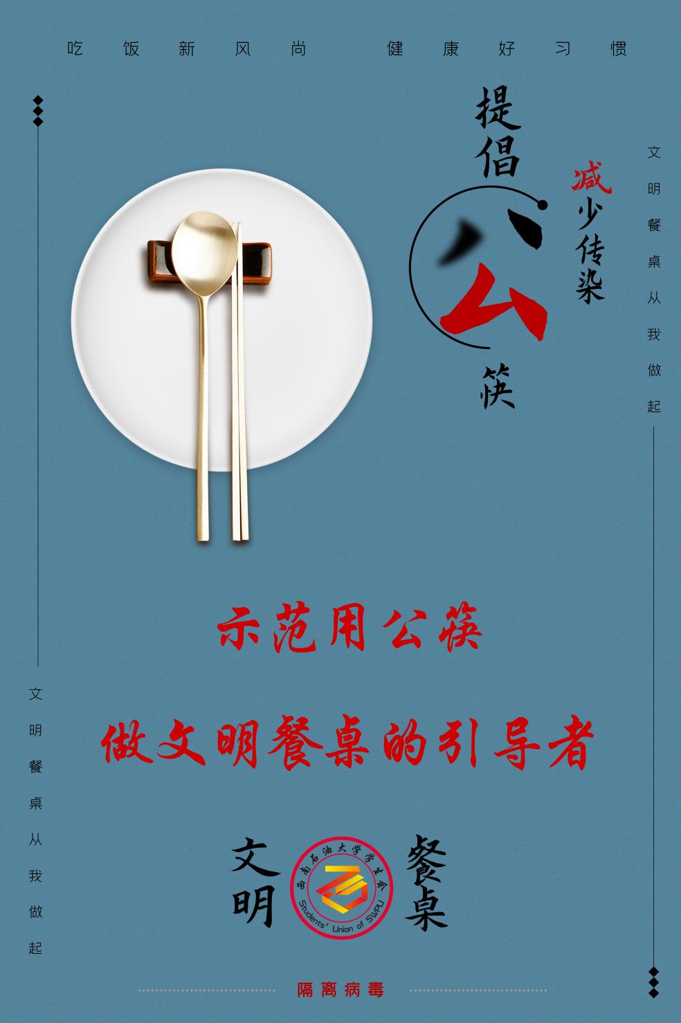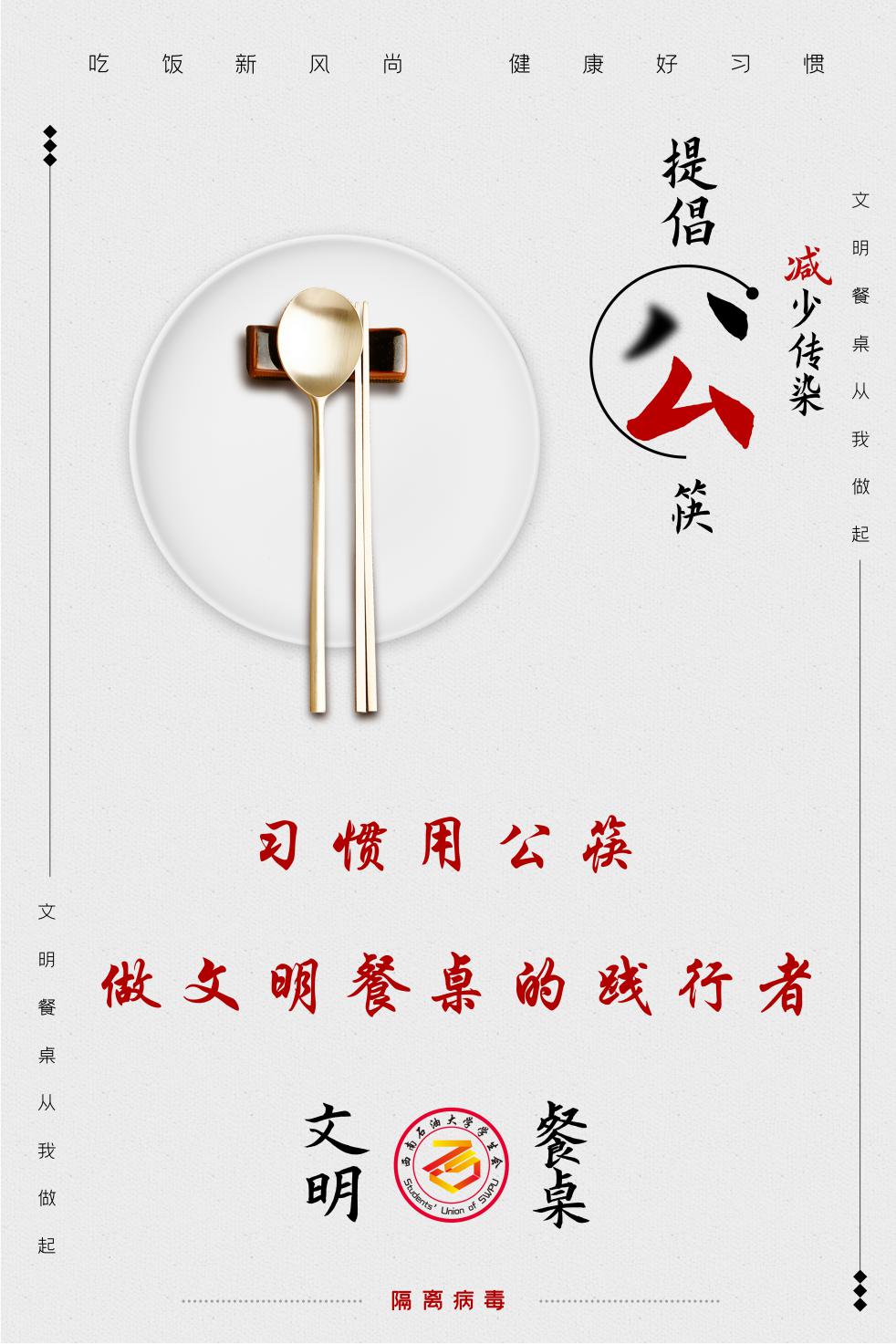中國人自古以來就有闔家歡慶,朋友相聚時圍桌合餐的傳統。目前,新冠肺炎疫情防控雖然取得階段性成效,但同時也讓我們清醒的認識到,家庭聚餐、朋友聚會,筷來勺往為病菌擴散、疾病傳播打開方便之門,此次新冠肺炎疫情,飛沫傳播和接觸傳播就是主要傳播途徑。因此為養成文明衛生習慣,降低新冠肺炎等疾病患病風險,在此,向石大團員青年倡議: