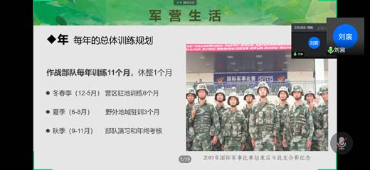 為了宣傳大學生入伍政策,號召大學生積極應征報名參軍,展示一名優秀軍人是怎么煉成的,6月30日我院于線上騰訊會議舉辦了征兵政策宣講暨退伍軍人分享會。經濟學專業退伍大學生士兵劉宸給大家分享了他的軍營生活,分享會由輔導員袁桔主持。